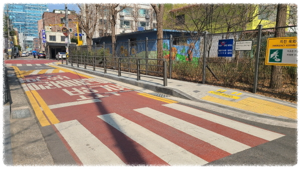 그래서 무조건 이 도로에서는 보행자이 지나갈 때까지 일시정지를 하거나 정 바쁘다면 최대한 보행자와의 거리를 확보하고 서행을 하면서 지나가야 한다.